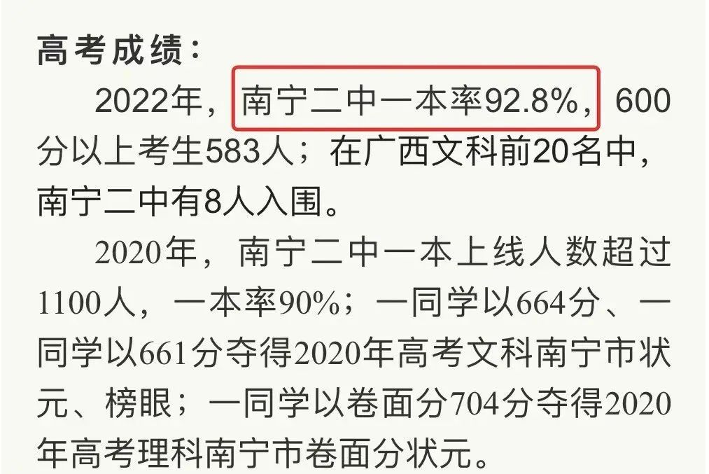 但这份担心实在略显多余,据悉南宁二中、三中都是示范性高中,平均一本升学率在95%以上。