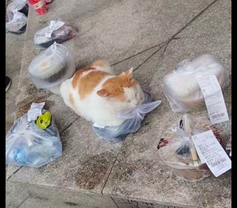 就有这么一位网友,他还在上学呢!他就很喜欢点外卖,不过因为学校的规定不准外卖员进入,所以点了外卖都会送到外面,到了提前会放在地上,然后你再去拿就可以了。而这一天当网友过去的时候,发现竟然有一只猫咪正趴在一份外卖上呢!也不知道是谁这么幸运呢,外卖先被猫咪给占了呢!