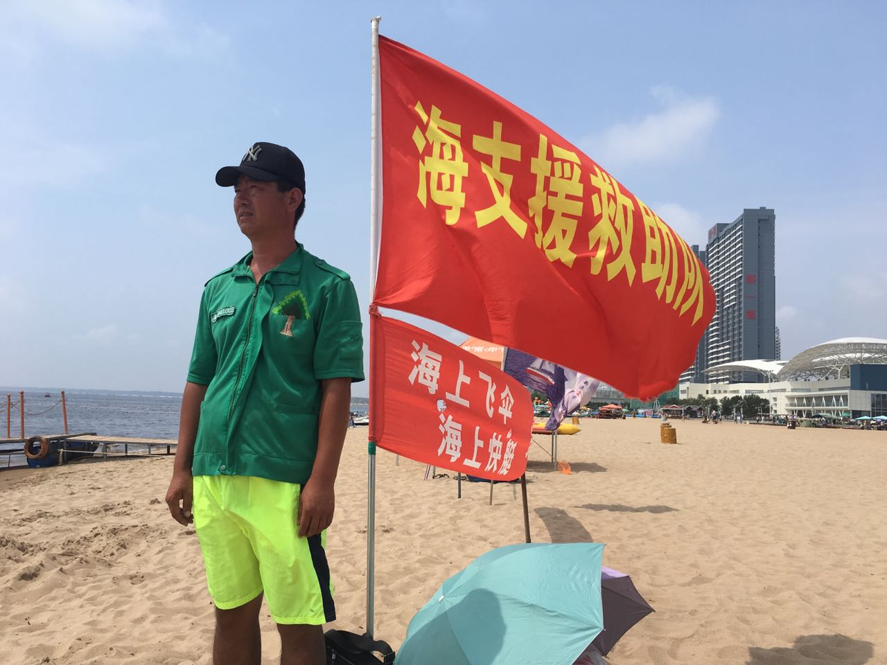 如今正值秦皇岛旅游旺季到来,大量游客来到海边,而在大家注意不到的地方,有这样一群人默默关注着他们的安全,守护着他们的平安,当有人在海中发生危险,他们肯定是第一批冲向海中的人。绿色的上衣、间隔不远立着的红色大旗,显示着他们的身份:海支援救助队。“我希望每个游客都高高兴兴地来,安安全全地回家,需要我们帮助的人越少越好!”炎炎烈日下,金海湾浴场海支援浅滩救助队队长田亮笑着说。