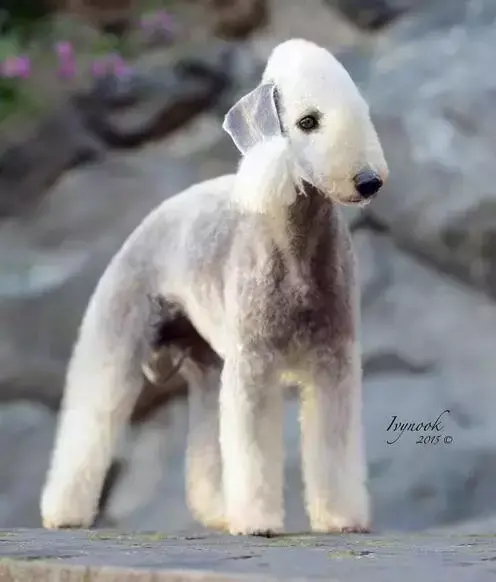 贝灵顿外形上最大的特点就是高高的额头和窄窄的脸,这也是区分它与贵宾的重要一点。