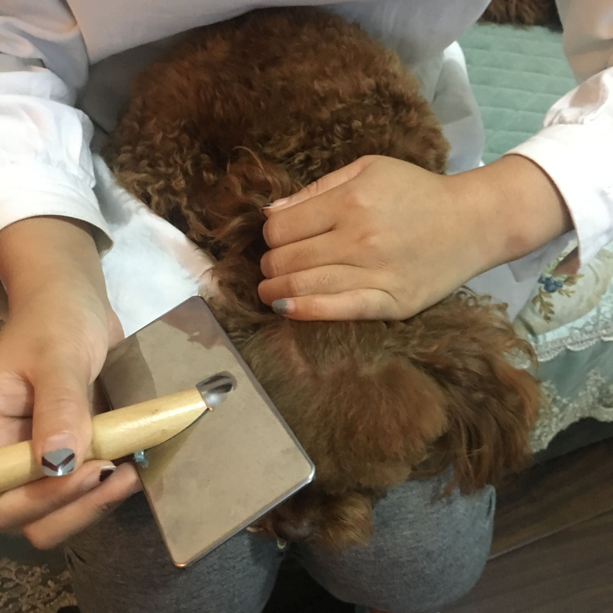 2、逆时针方向进行一排一排的梳理,七妈比较喜欢放在腿上,这样我们俩都舒服些,从头部开始梳理,如下图↓↓↓